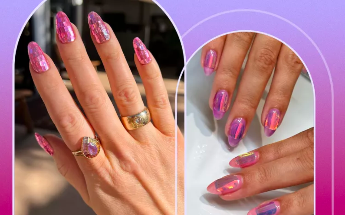 Created by Euphoria’s lead nail artist Natalie Minerva, these disco-inspired nails bring fun texture to your Barbiecore manis. It’s literally a party on your nails.