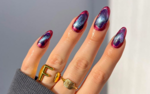 There’s nothing as eye-catching as a velvet nail. Turn to this finish for your pink metallic nails to give your manicure an elevated look.